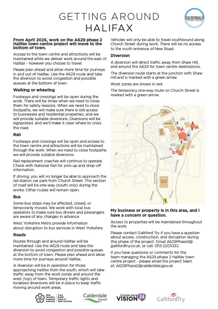 We have recieved an update regarding the planned roadworks on the A629. A handy map and information regarding the diversions were supplied.