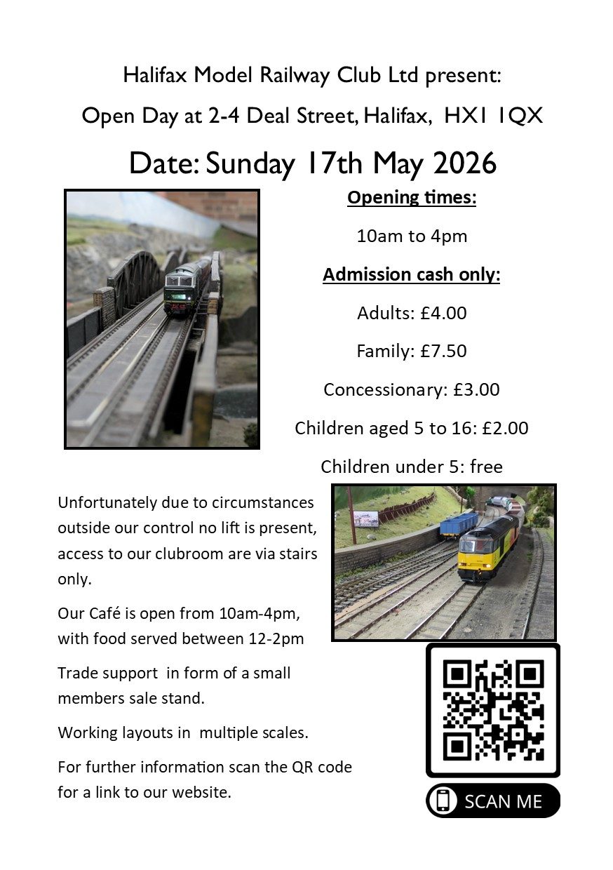 We have recently been informed that there will be some roadworks and construction in the vicinity of the club rooms. The main road that runs past the club-rooms will be partially closed in one direction and there will be a diversion in place (A629 phase 2 Halifax Town Centre). Calderdale Council have a informative web-page with this on, link below. This will affect journey time for both members and visitors to our Summer Open day. We hope that this doesn't discourage you from visiting. Many regards , Halifax MRC ltd committee.